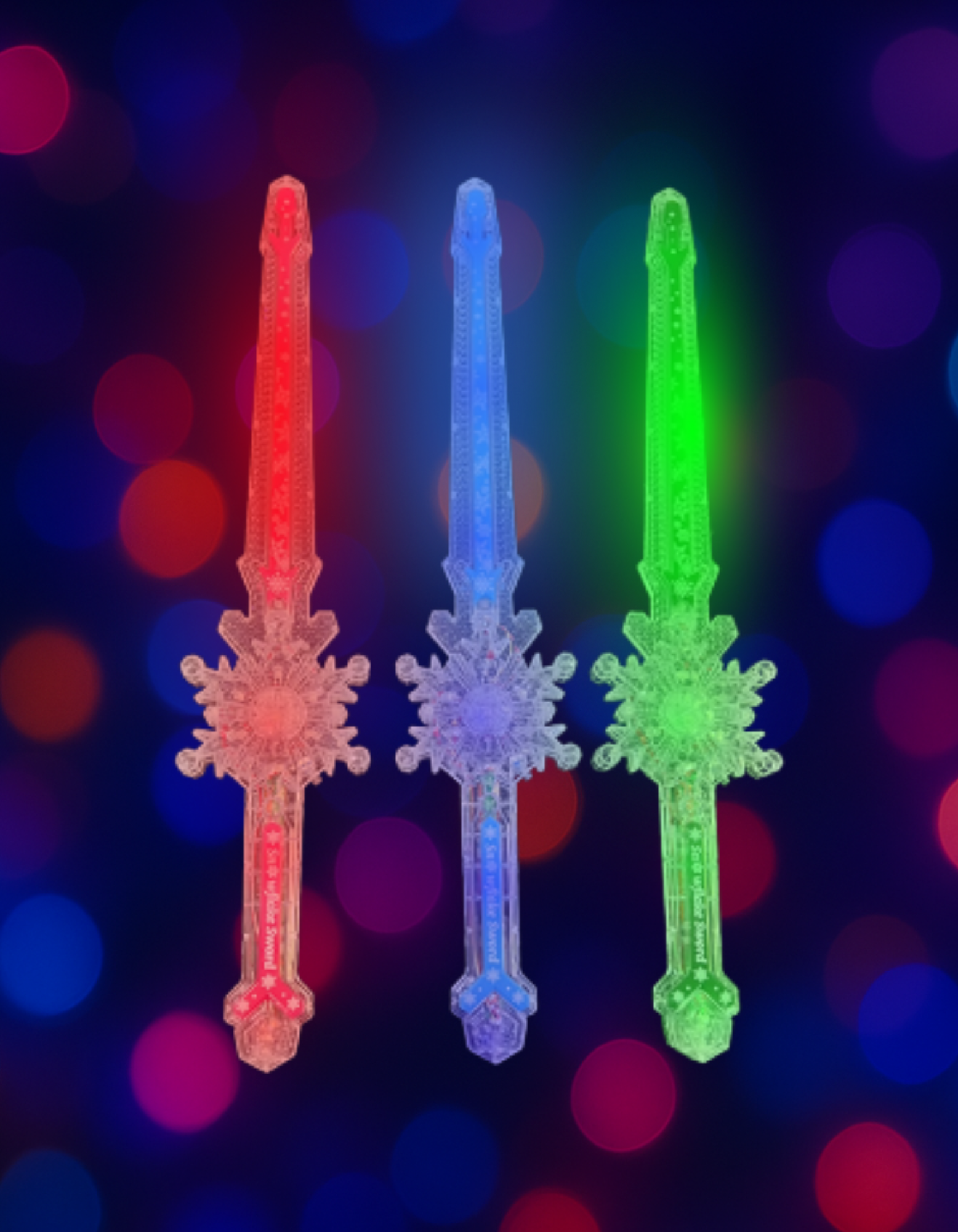 Battle in style with our translucent crystal blade sword! This light-up sword plays thrilling sound effects when swung, adding extra excitement to every battle. It’s perfect for pretend play, costumes, and nighttime glow fun!