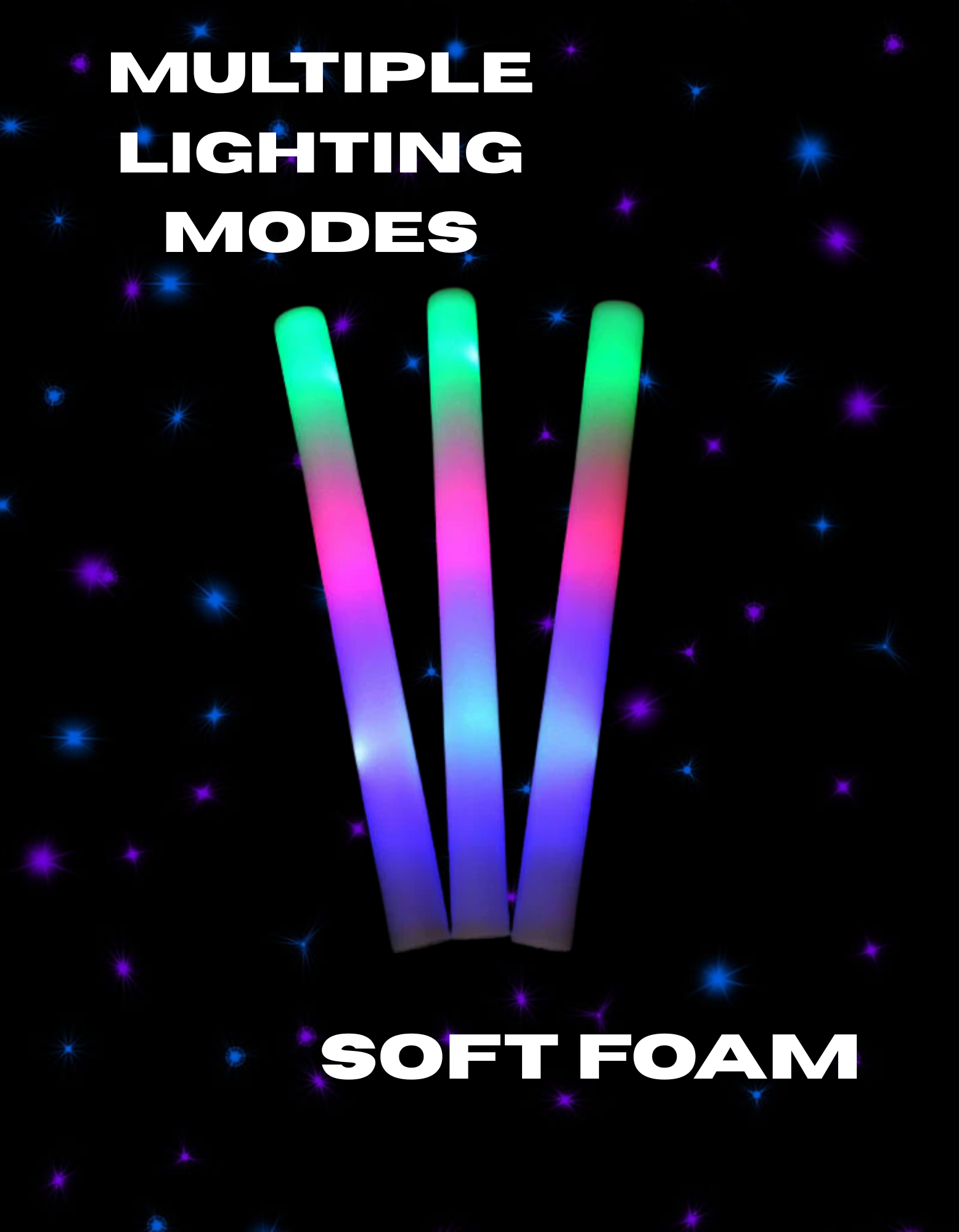 Wave, flash, party on! These lightweight foam sticks come alive with multicolor flashing modes, turning any event into a glow party. Great for concerts, parades, and parties โ they're soft, safe, and seriously fun for all ages.