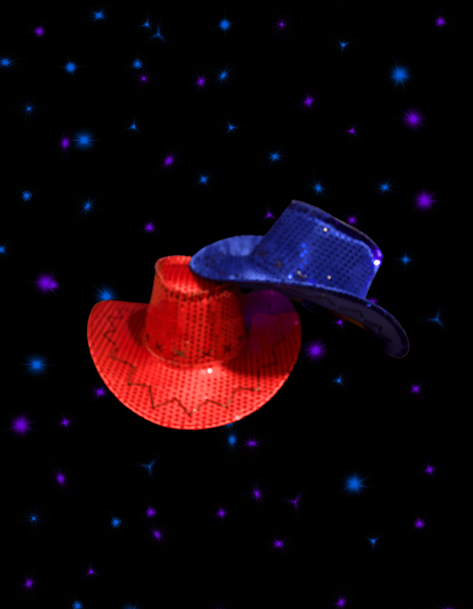 Shine bright on the wild side! The GlowRider Cowboy Hat adds a bold flash to any outfit with built-in LED lights that sparkle in multiple modes. Whether you're dancing at a festival, lighting up a rodeo, or glowing through the night, this hat brings big energy and western flair.